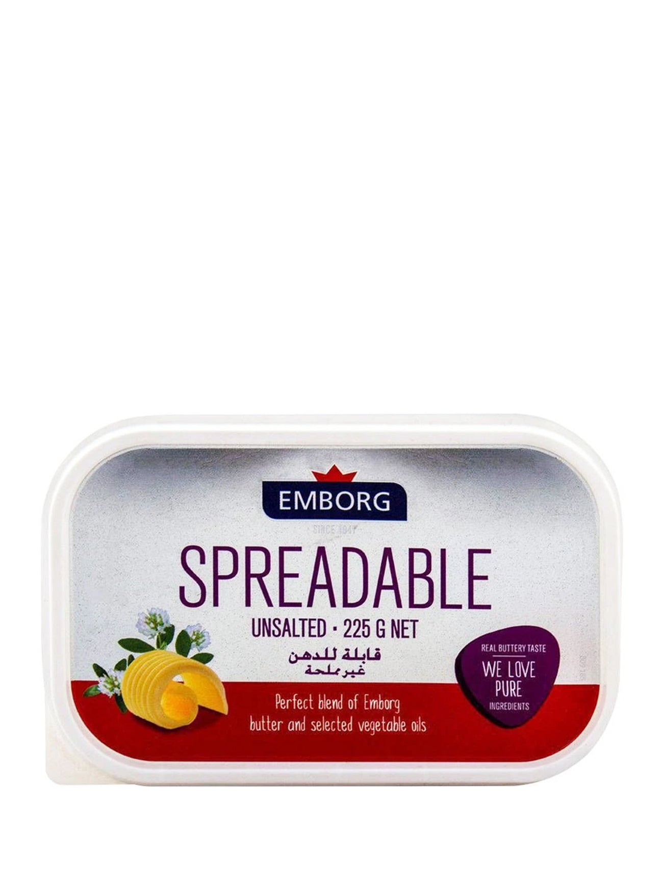 EMBORG SPREADABLE BUTTER UNSALTED 225G